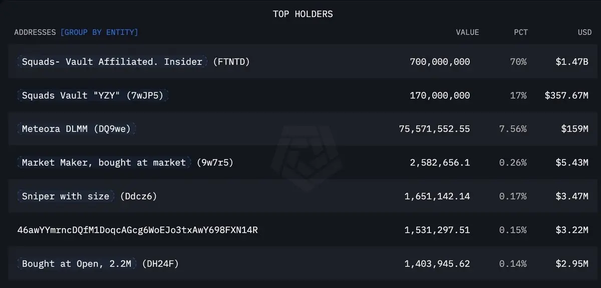 而据Coinbase主管Conor Grogan也指出,新Kanye代币至少94%由内部持有,其中87%曾由单一多签钱包控制,现已分散至多个地址;约3%由多钱包在开盘时大额买入,7%用于流动性池。