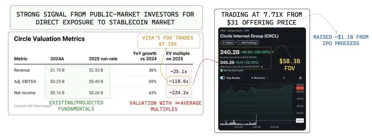 Circle's $58.2 billion market capitalization essentially represents a "USDC ecosystem premium": if USDC supply growth slows down (e.g., due to regulatory policy shocks or a DeFi liquidity retreat), its high valuation will face correction pressure. Currently, two signals need close attention:
