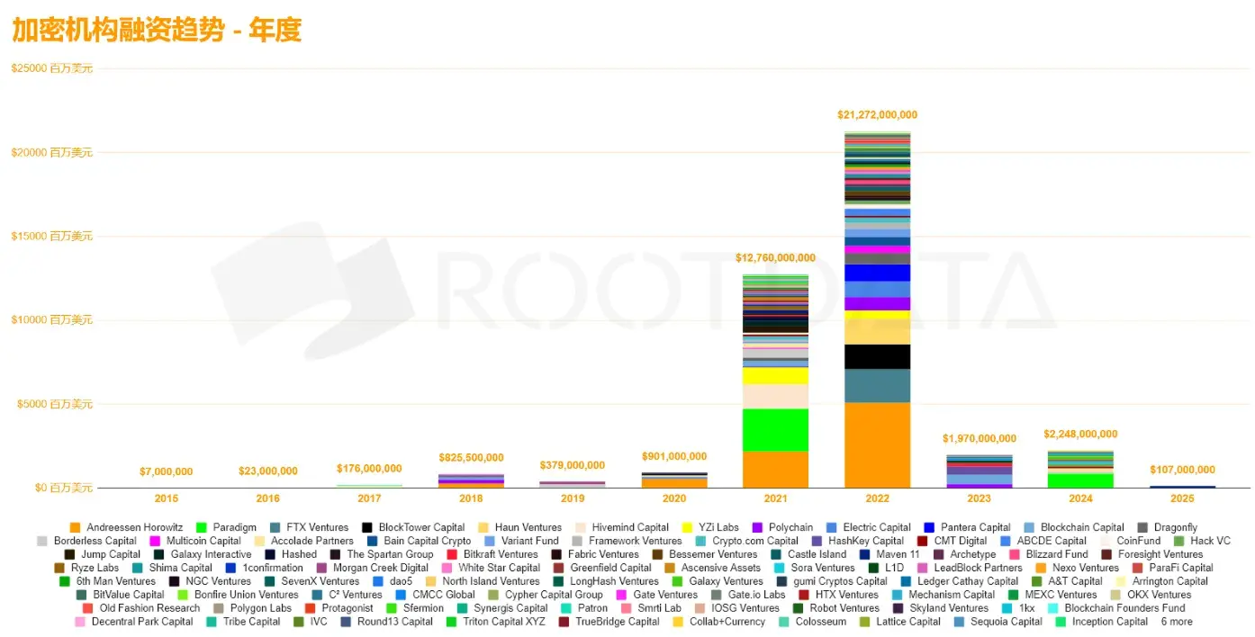 Quarterly Data Confirms the Decline: After Q2 2024 (BTC halving cycle), fundraising dropped to $420 million, comparable to the level before the DeFi rise in 2020. This cycle's bull market did not bring incremental funds to crypto institutional fundraising.