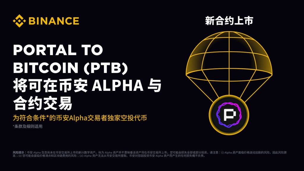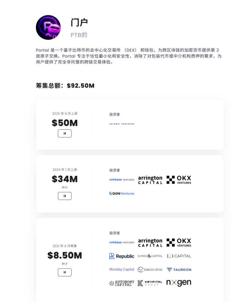 This project will directly list on Binance Contract, with contract trading time at 20:30 (UTC+8), Binance Alpha trading time at 20:00, and Gate spot trading time at 21:00. The project has good popularity, with a financing of 92M (high probability of fake financing). It belongs to the BTC cross-chain bridge sector. Below we will analyze $PTB (Portal To Bitcoin) in detail: