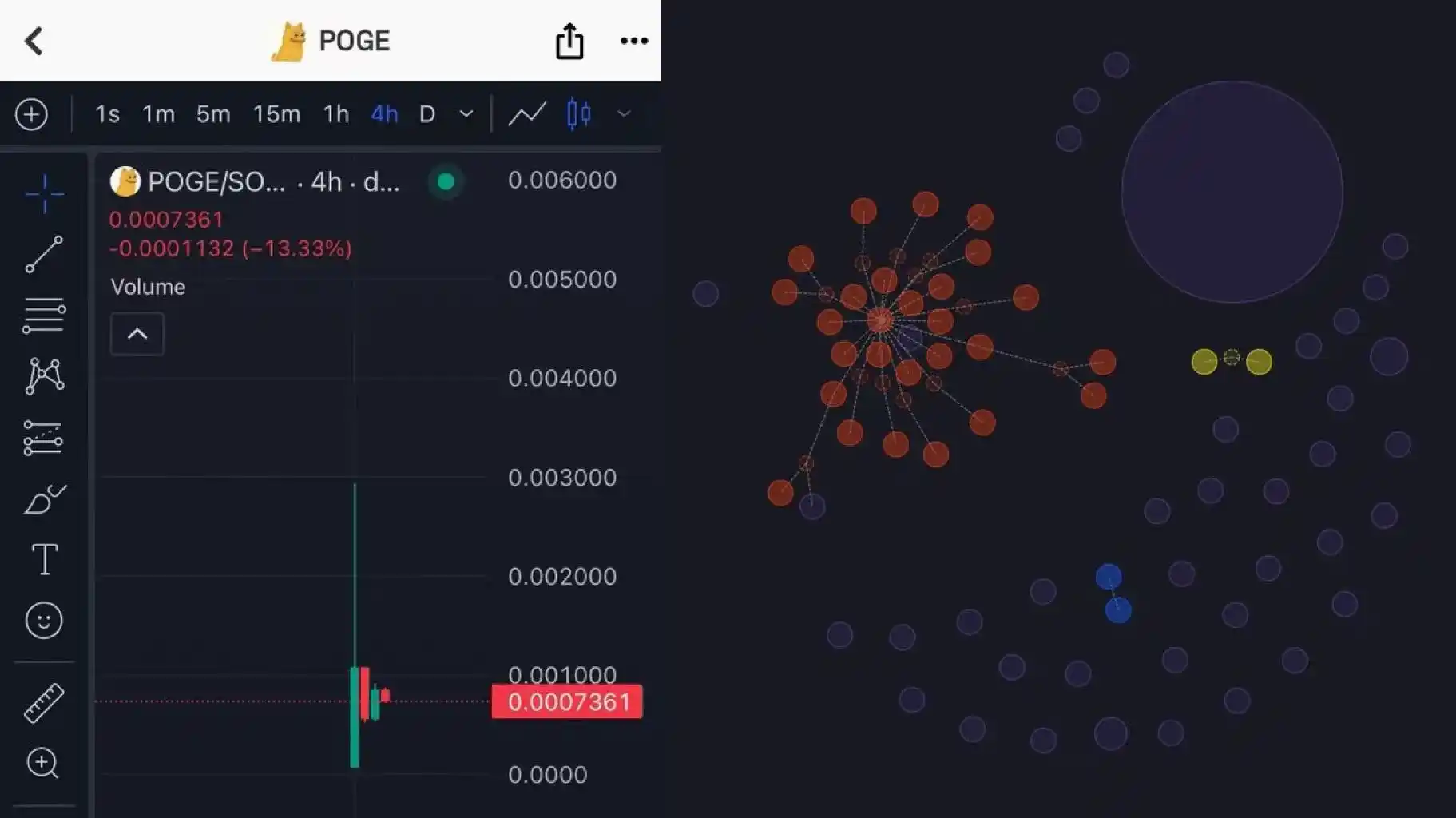 After $COPE crashed, the next token they launched was $POGE. These two KOLs seemed to control 95% of the supply, allowing them full control over the price, and the result was the same.