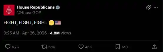 此次特朗普再遭刺杀,这个曾经经典的 meme 也第一时间被 meme 玩家们想起。另外,美国众议院共和党团的官方 X 账号也在枪击事件后再次提起了这个口号: