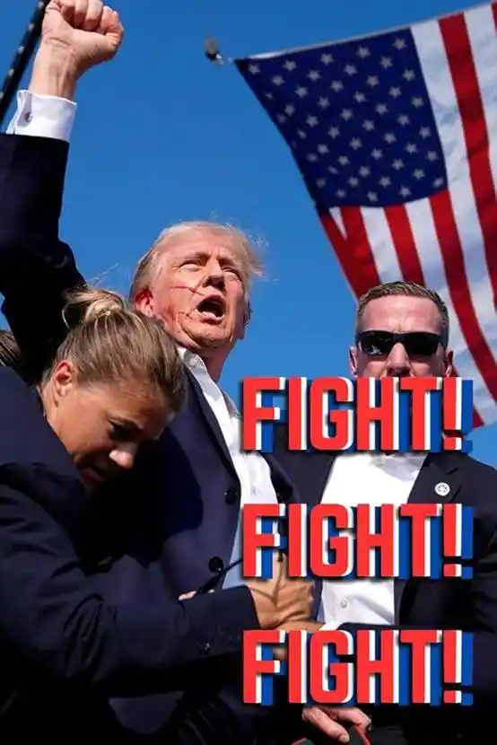 在文章的开篇我们提到过,2024 年,特朗普在竞选集会上遇刺未遂,血迹斑斑却高举拳头高喊「Fight!」的照片瞬间成为 X 上最火的 meme。