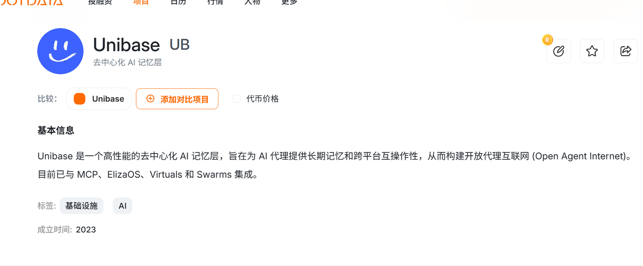 Unibase 是一个高性能的去中心化 AI 记忆层,旨在为 AI 代理提供长期记忆和跨平台互操作性,从而构建开放代理互联网 (Open Agent Internet)。目前已与 MCP、ElizaOS、Virtuals 和 Swarms 集成。
