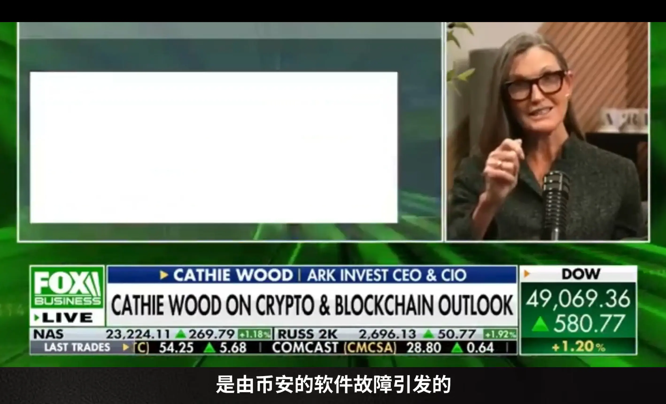 事件的起因来自于“木头姐”Cathie Wood 在一期节目上的发言,她指出比特币近期的高位回落是受 10 月 10 日币安软件故障引发的 280 亿美元去杠杆事件影响。她分析称目前的市场抛压已基本结束,随着机构投资者关注“四年周期”的转折,预计比特币将在 8 万至 9 万美元区间横盘筑底后,结束下行趋势并重拾升势。
